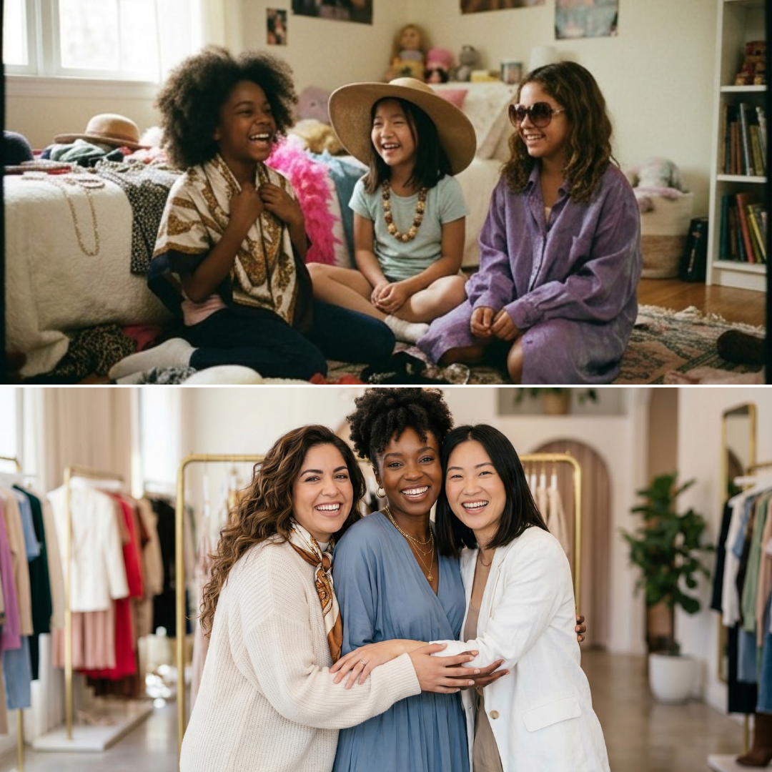 It started with zero plan and pure joy. Three little girls, a pile of grown-up clothes, and hours of laughing until our stomachs hurt. We didn't know we were building anything back then — we just knew that when we were together, everything felt right.